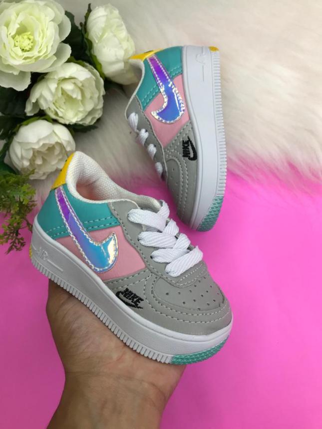 TENIS AIRFORCE BABY CINZA/VERDE HOLOGRAFICO