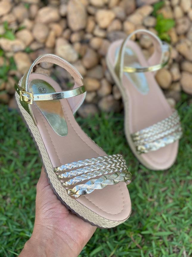 SANDALIA FLATFORM JUVENIL DOURADO TRANCINHAS