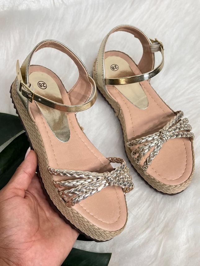 SANDALIA FLATFORM JUVENIL DOURADO TRANCINHAS NÓ FRENTE