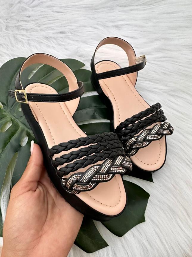 SANDALIA FLATFORM JUVENIL TRANCA PRETO