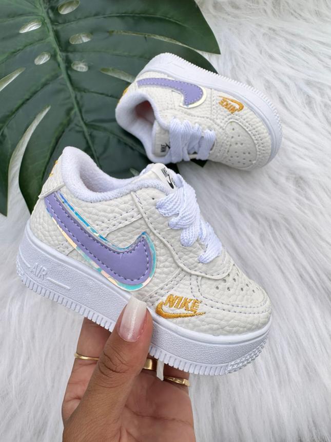TENIS AIRFORCE BABY PREMIUM BCO/LILAS HOLOGRAFICO