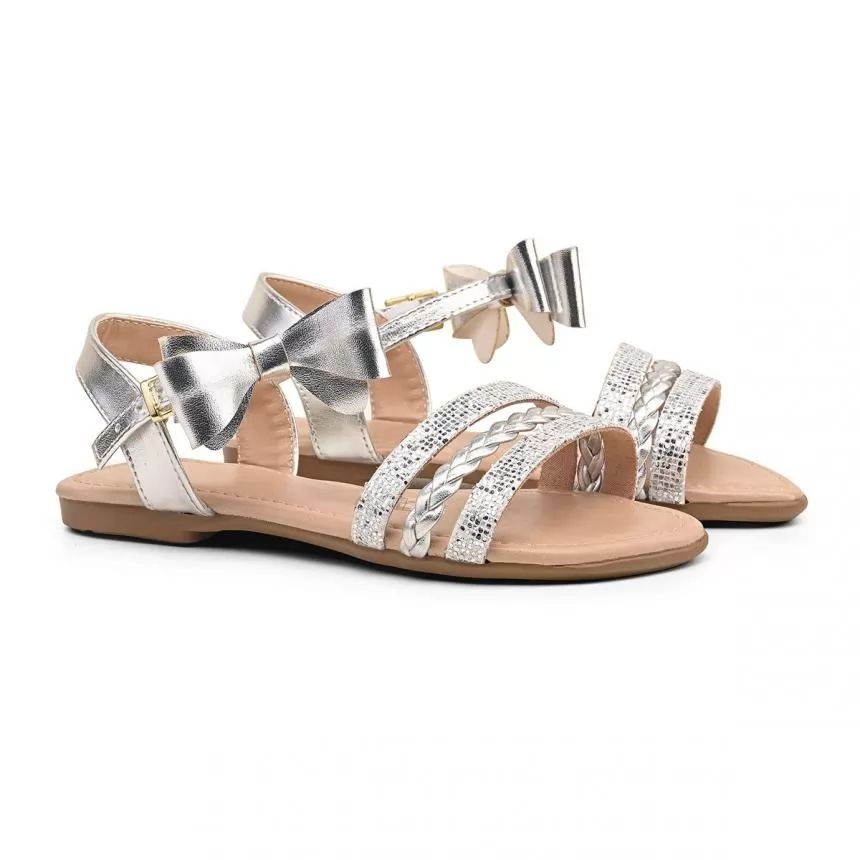 SANDALIA JUVENIL LACINHO GLITER PRATA
