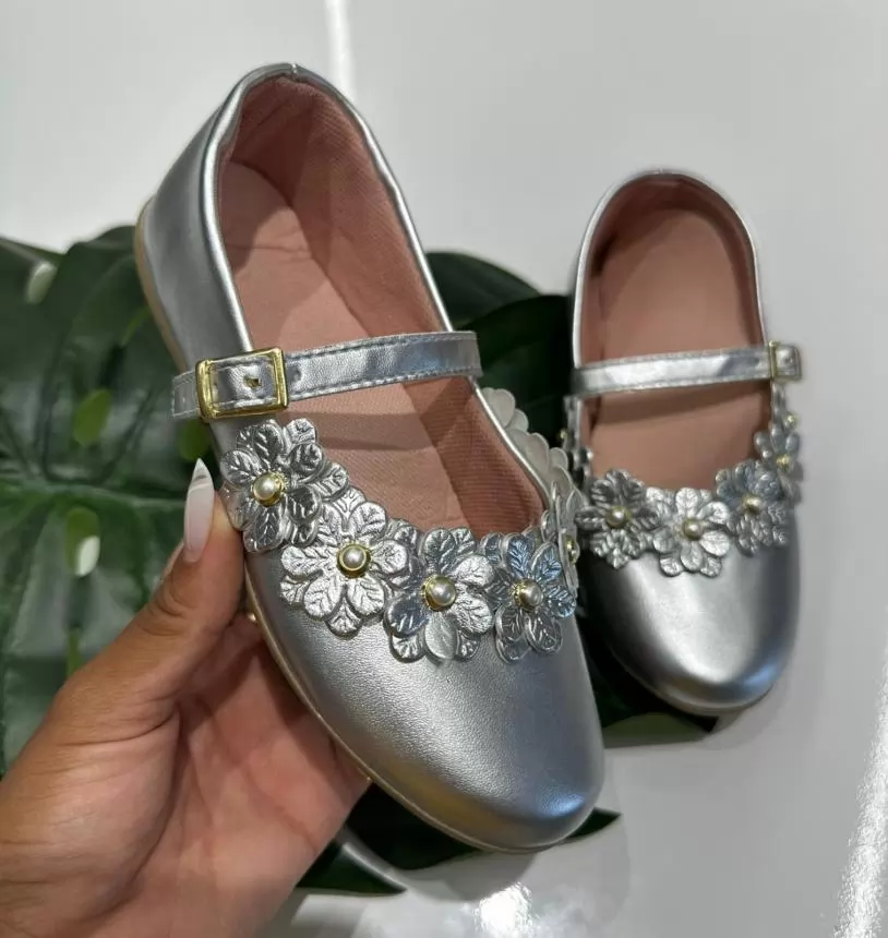 SAPATILHA JUVENIL FLORES PRATA JUVENIL