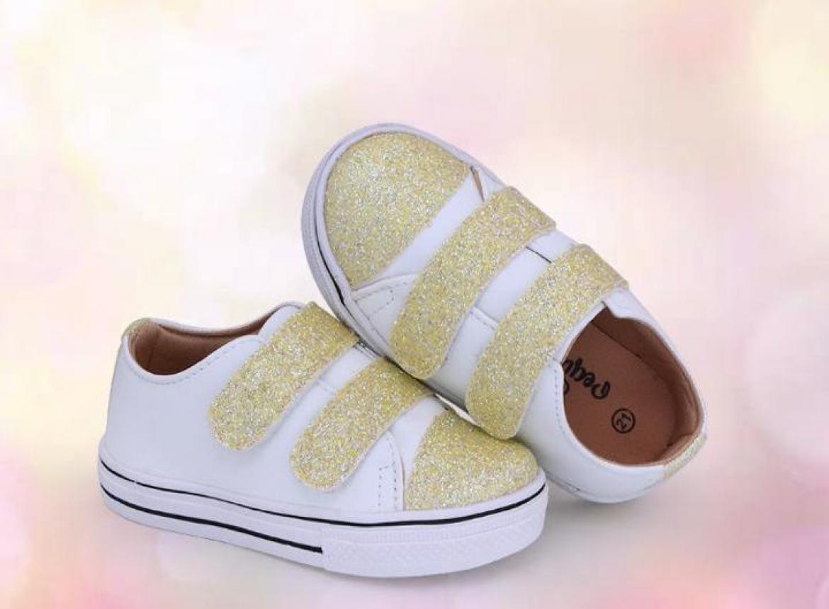 TENIS 2 VELCRO BEGE/DOURADO LUXO