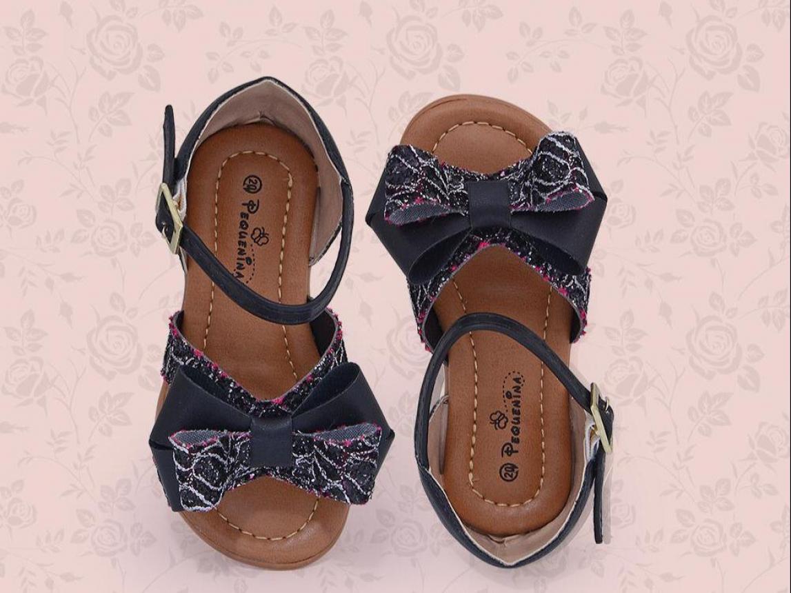 SANDALIA BABY LUXO LACO PRETO/PRATA