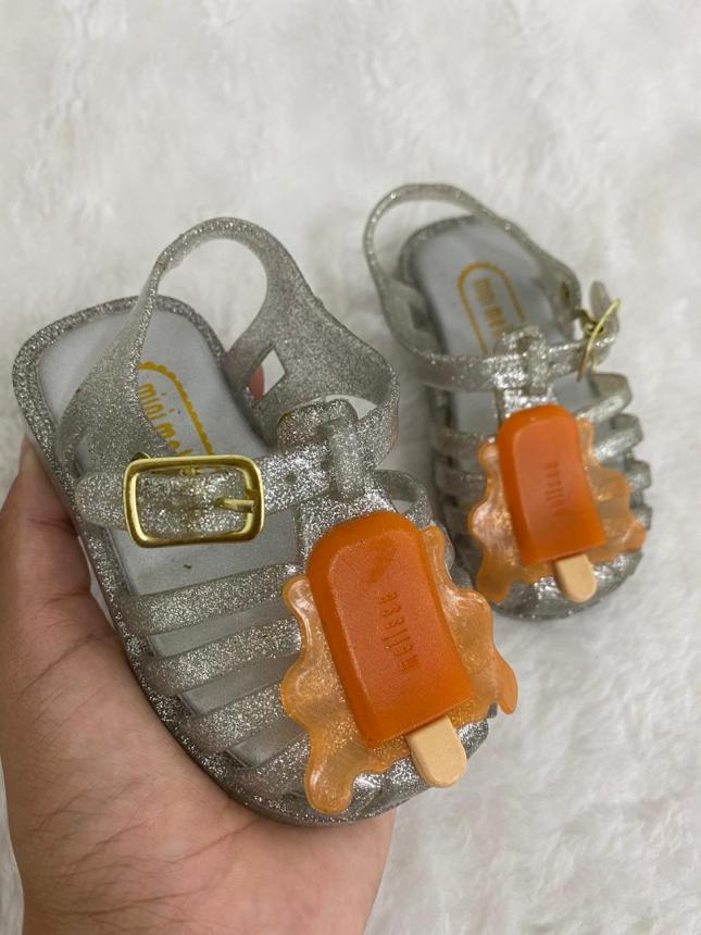 SANDALIA ARANHA QUADRADA BABY PRATA PICOLE LARANJA