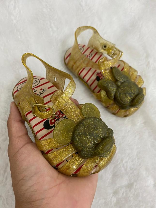 SANDALIA ARANHA REDONDA BABY CABEÇÃO MICKEY GLITER DOURADA