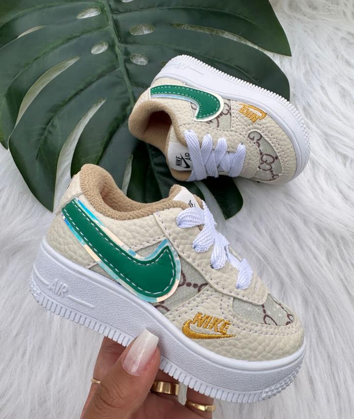 TENIS AIRFORCE BABY PREMIUM BEGE/VERDE HOLOGRAFICO