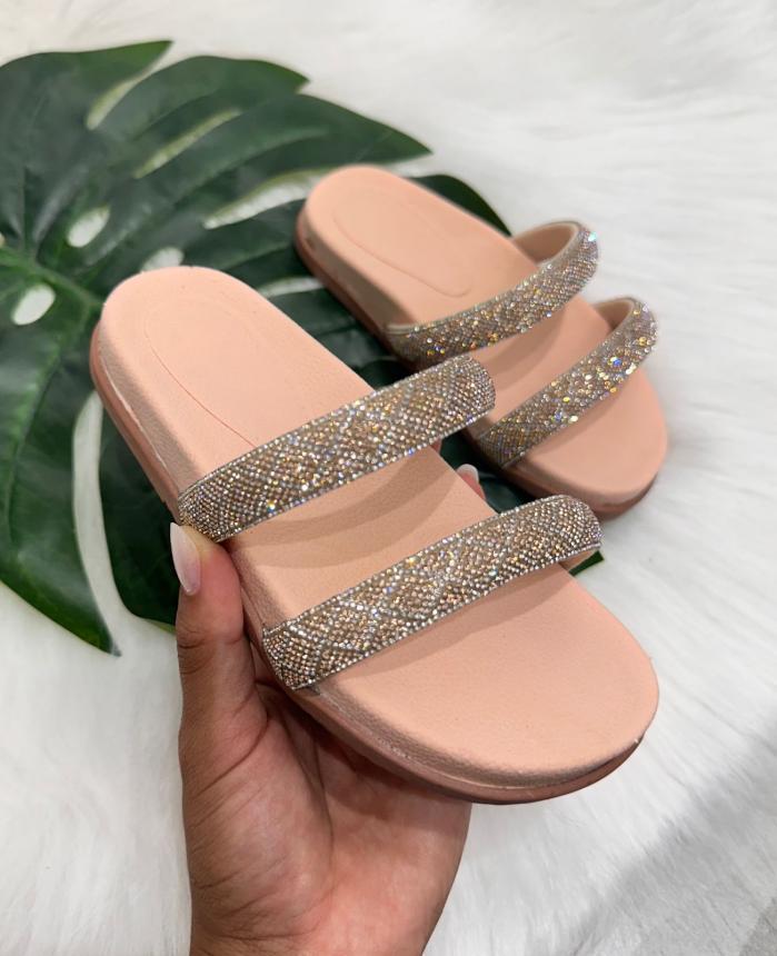 PAPETE CHINELO JUVENIL ROSE/CRISTAL 2 TIRAS ROSE