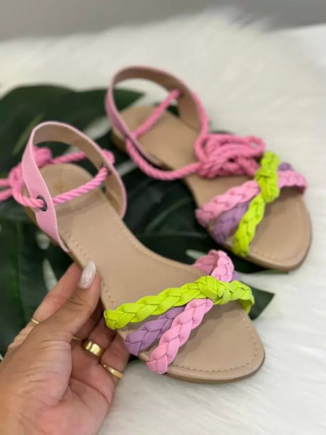 SANDALIA JUVENIL AMARRAÇÃO ROSA/VERDE/LILAS