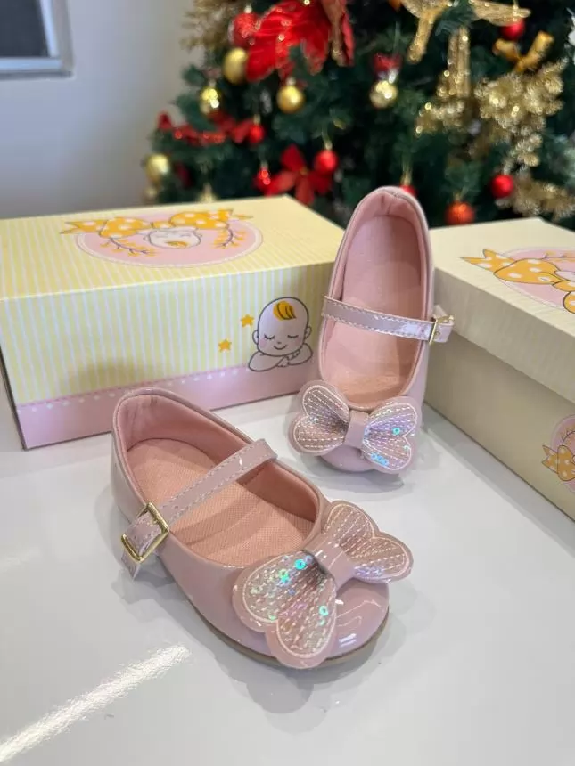 SAPATILHA BABY LACO FRENTE BRILHO NUDE