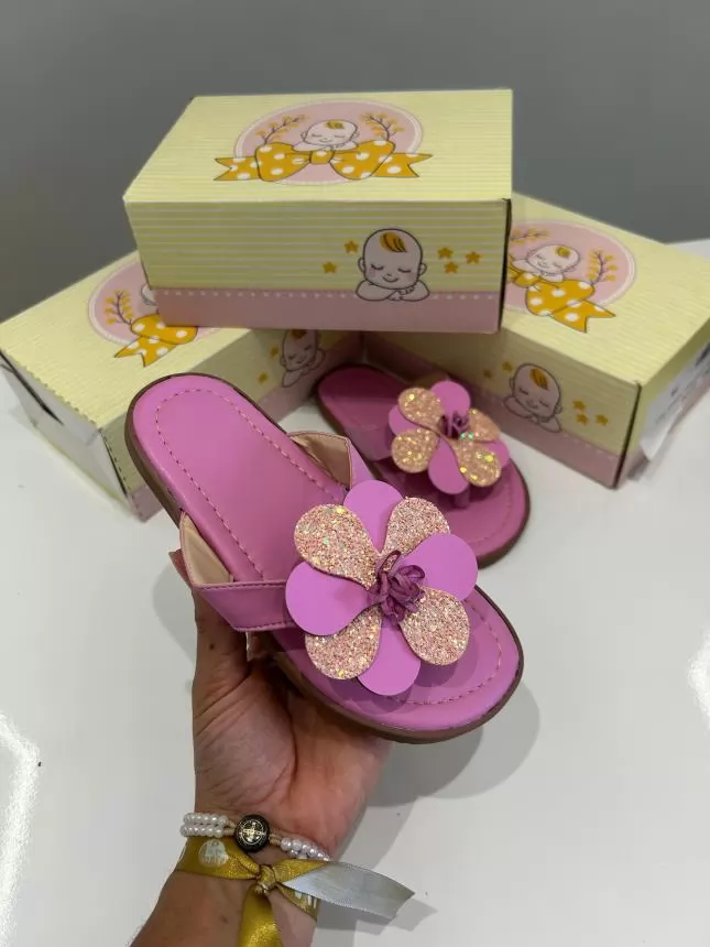 RASTEIRA JUVENIL FLOR GLITER ROSA