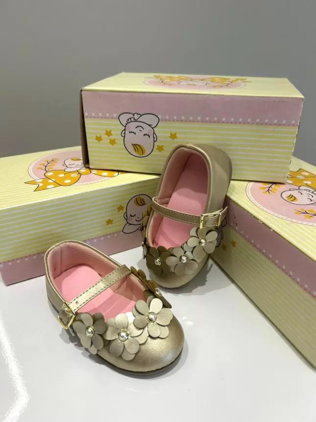 SAPATILHA BABY FLORES DOURADO
